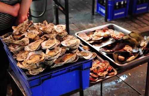 看点:住杨浦的,要吃海鲜,大多会去通北路。路不算长,店却不少。感觉与吴江路相似,都是以夜市排档为主。据说这里的海鲜都是从铜川路取的,每天晚上5点开始营业,一直到半夜3点多才结束。
